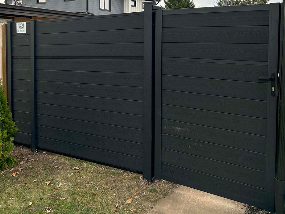 Greenwood Fence is a specialized composite fence made from wood and recycled plastic with an aluminum framework. It is a modern and eco-friendly fence material. Greenwood Fence materials are naturally waterproof, pest and rust-resistant, and made from 90% recycled materials. Both our team and the customer are thrilled with the end result!